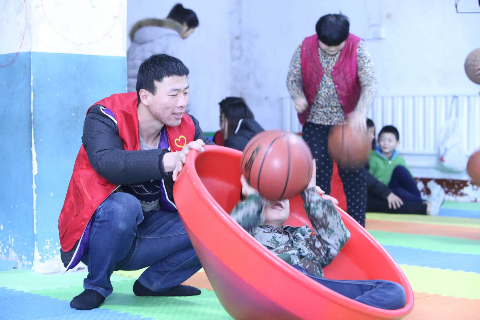 欢乐互动时间,和孩子们一起唱歌、跳舞、做游戏,是他们最开心的事情。