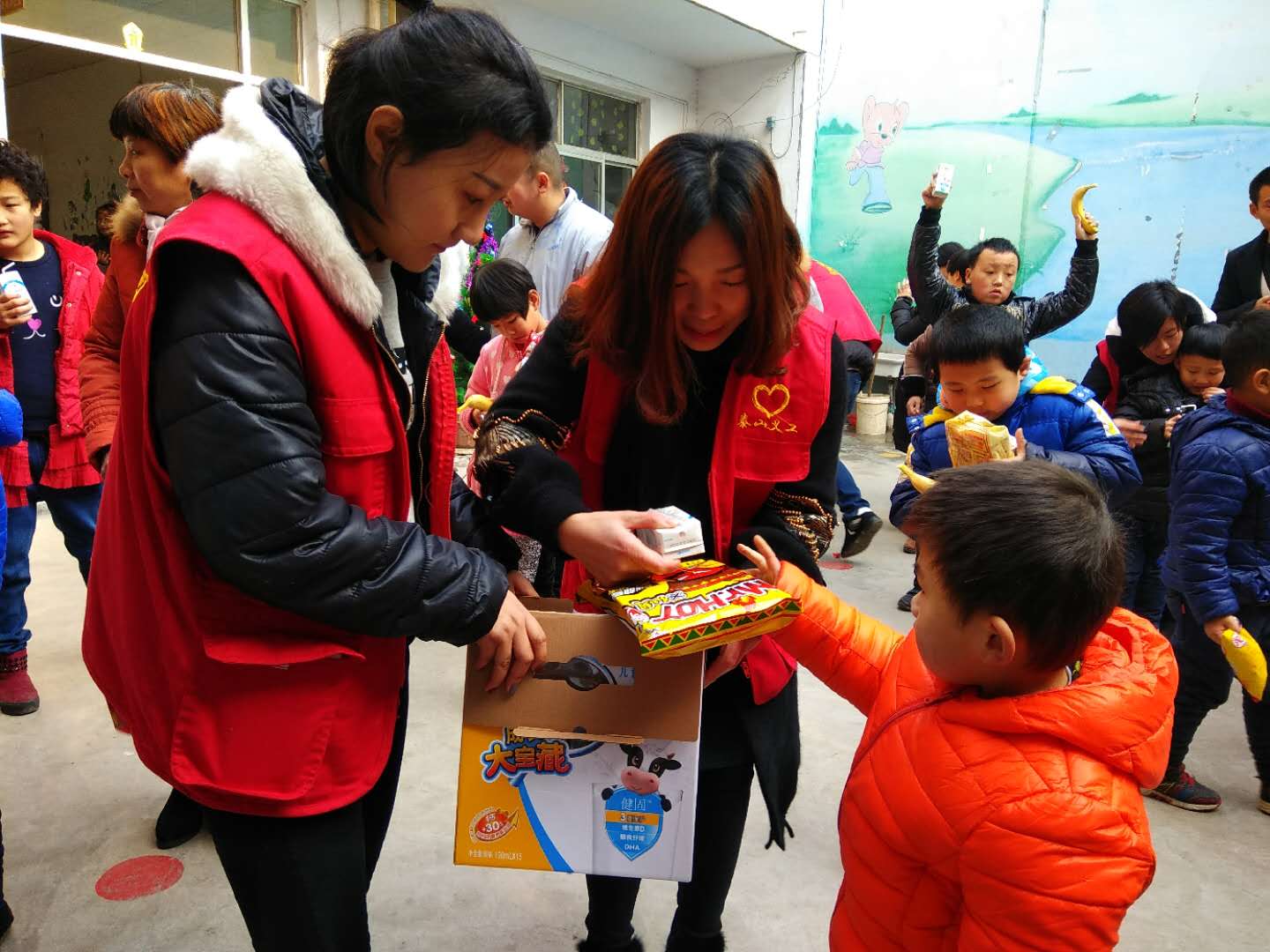 又到了分发礼物的时间,孩子们高兴的手舞足蹈,这是他们最期待的时刻。