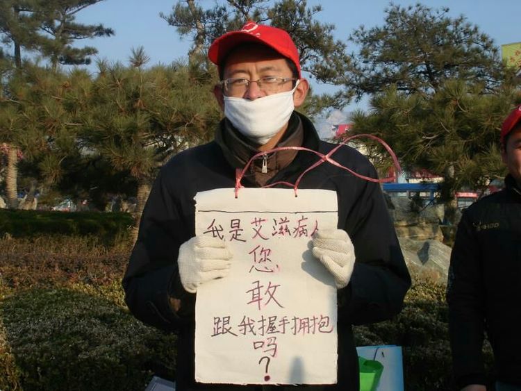为了消除人们对艾滋病的歧视,山哥亲自扮演患者,寻求路上的握手和拥抱泰山义工田磊,为泰山义工的发展和壮大做出了不可磨灭的贡献。