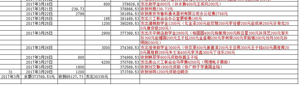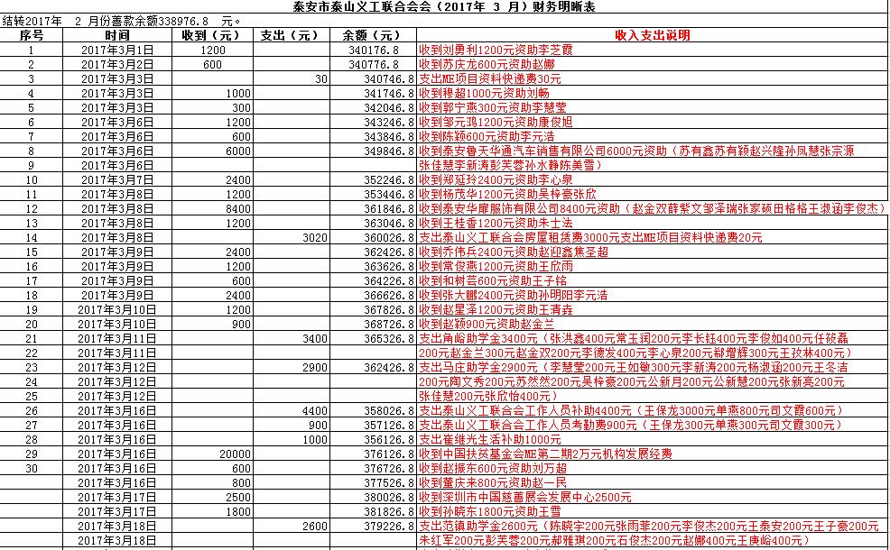 泰安市泰山义工联合会会(2017年 3 月)财务明晰表