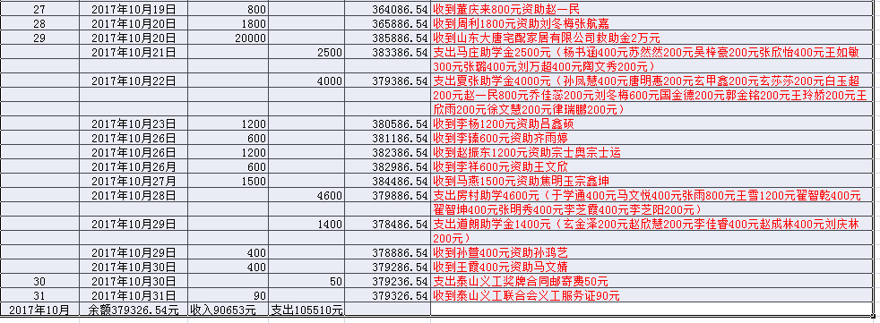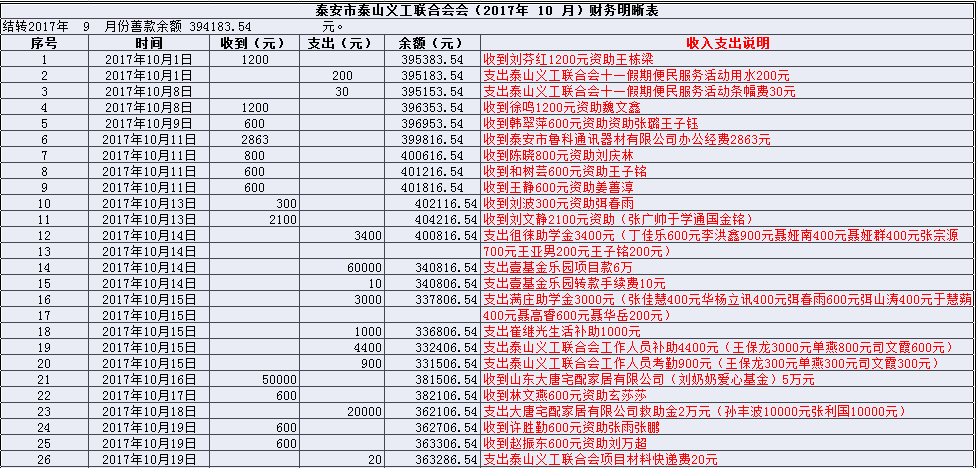 泰安市泰山义工联合会会(2017年 10 月)财务明晰表