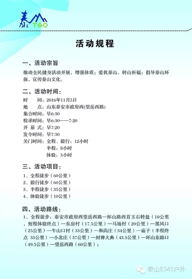 请各位泰山义工方队志愿者仔细阅读下列活动指南,沿途注意行走安全,特别留意环保和防火。除了脚印,什么都不要留下。
