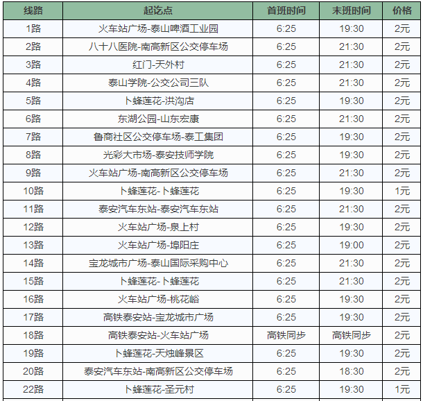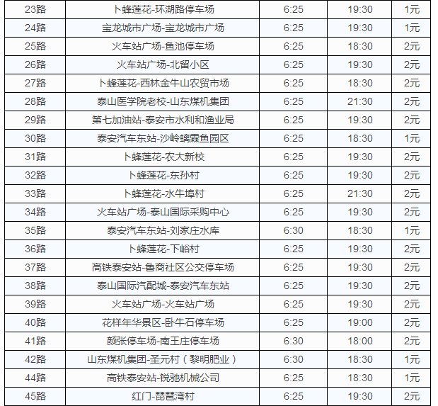 泰山义工提示您:泰安公交又换时间啦!各线路首末班时间表发布