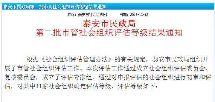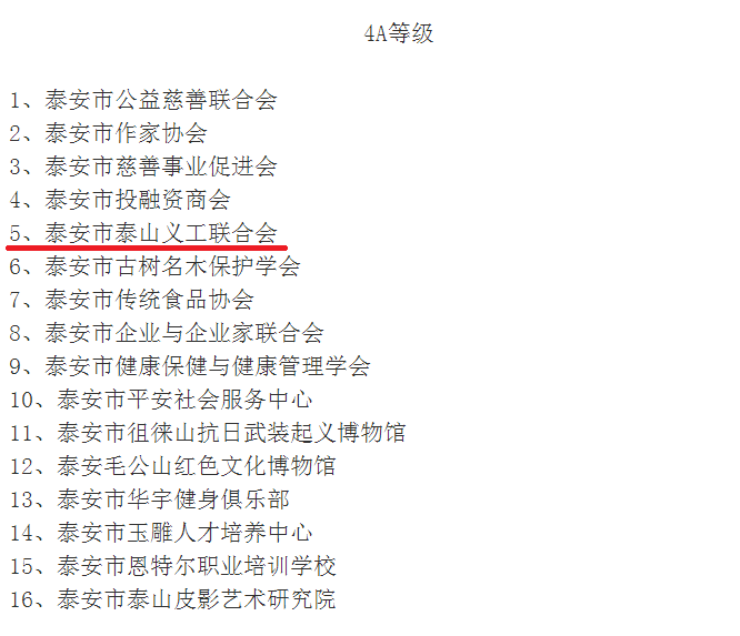 【喜报】热烈祝贺泰安市泰山义工联合会评为4A级社会组织