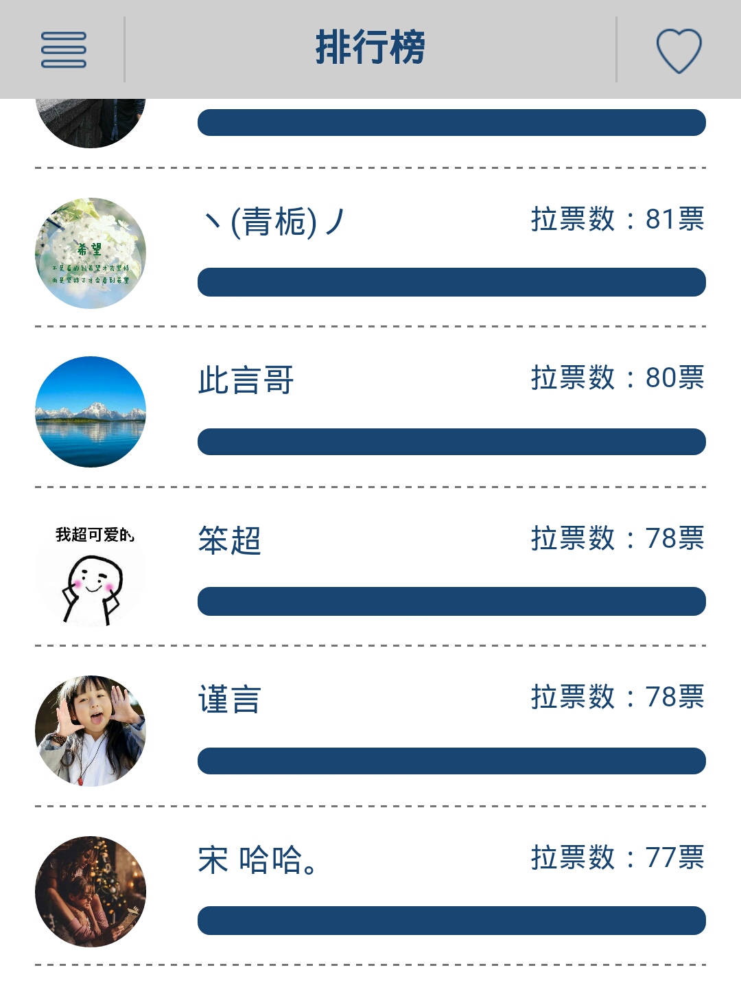 拉票前100名如下:感谢他们对本项目的大力支持和帮助