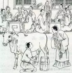 佛经云:昔有愚人,将会宾客,欲集牛乳,以拟供设,而作是念:我今若豫于日日中毂取牛乳,牛乳渐多,卒无安处,或复酢败。不如即就牛腹盛之,待临会时当顿毂取。作是念已,便捉牸牛母子各系异处。却后一月,尔乃设会迎置宾客,方牵牛来欲毂取乳。而此牛乳即干无有,时为众宾或瞋或笑。愚人亦尔。欲修布施,方言:待我大有之时,然后顿施。未及聚顷,或为县官水火盗贼之所侵夺,或卒命终不及时施。彼亦如是。