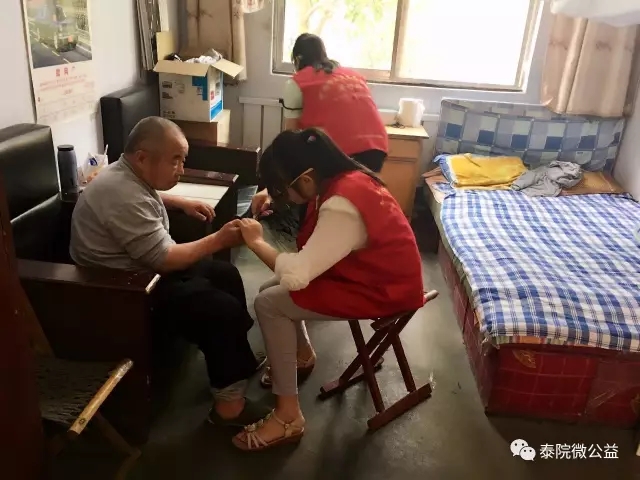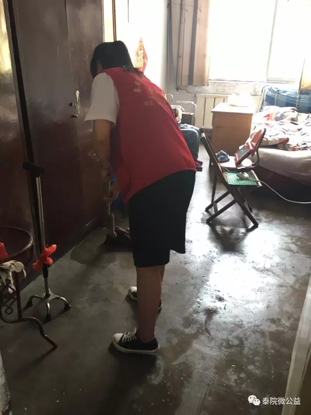 在敬老院中,志愿者们为爷爷奶奶们打扫卫生,整理被褥,陪爷爷奶奶们聊天,虽然只是短时间的相处,但也希望爷爷奶奶们能够开心快乐。